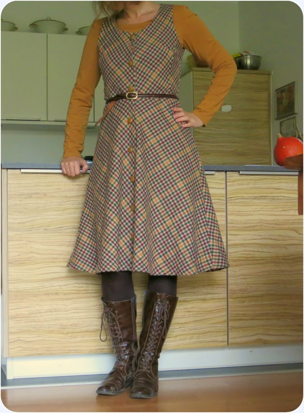 Das Kleid ist so toll, ich habe das Modell gar nicht erkannt, obwohl ich es auch in Woll-Karo nachgenäht habe (allerdings habe ich das Oberteil vom Rock getrennt und einen Zweiteiler draus gemacht). Deine Variante gefällt mir noch besser als das Original! Auch die Länge steht dir super, das wirkt so beschwingt. Vor allem mit den coolen Boots dazu.